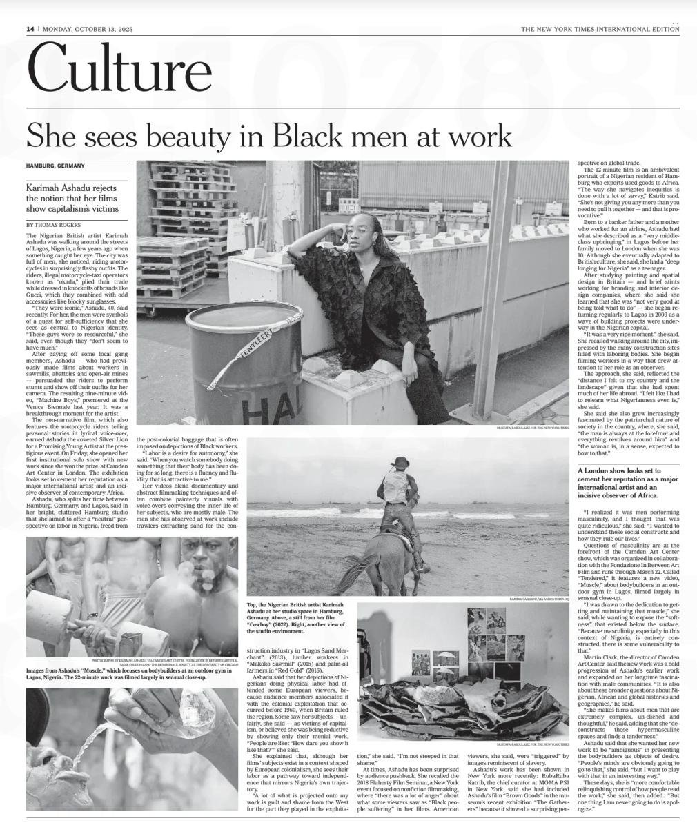 “Muskeln und Motorräder: Die preisgekrönte Videokunst von Karimah Ashadu” (Muscles and Motorcycles: The award-winning video art of Karimah Ashadu), October